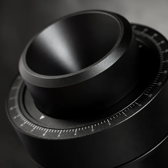 El corazón de la ajuste de molienda continuo – Esto le permite ajustar el tamaño de molienda con precisión para cualquier método de preparación, desde un espresso fino hasta un café de filtro grueso. Vaso dosificador magnético Dosifica de forma limpia y sin desperdicios, mientras que el sistema integrado Golpeador de tolva Expulsa de forma fiable la harina residual.